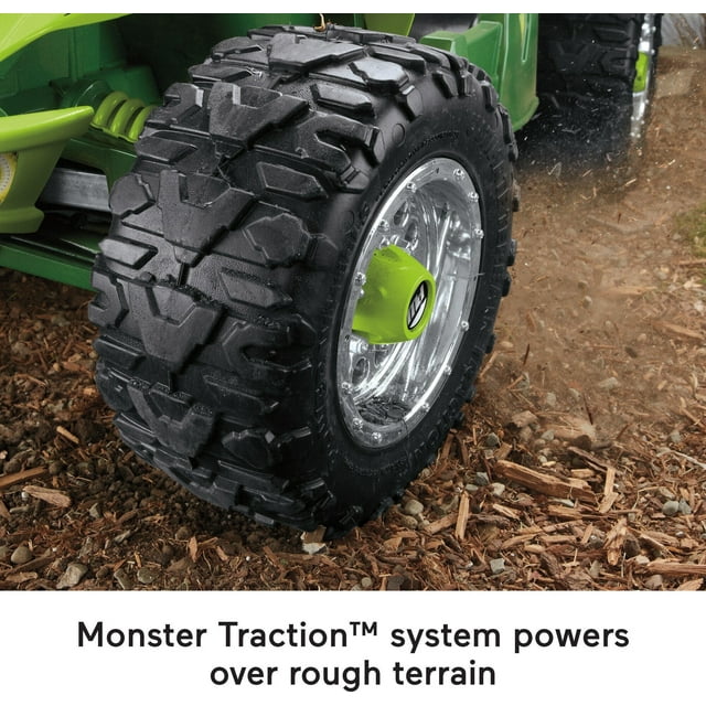 With an awesome green frame and “chrome” accents, this Power Wheels Dune Racer Extreme battery-powered ride-on toy from Fisher-Price is ready for young drivers to race around in style. Its low-profile and open cockpit lets kids easily hop in and out for role play, while extra wide tires and a sturdy steel frame helps them tackle all types of terrain. This battery-powered toy drives in two speeds (forward and reverse) for flexible play on both hard surfaces and grass.