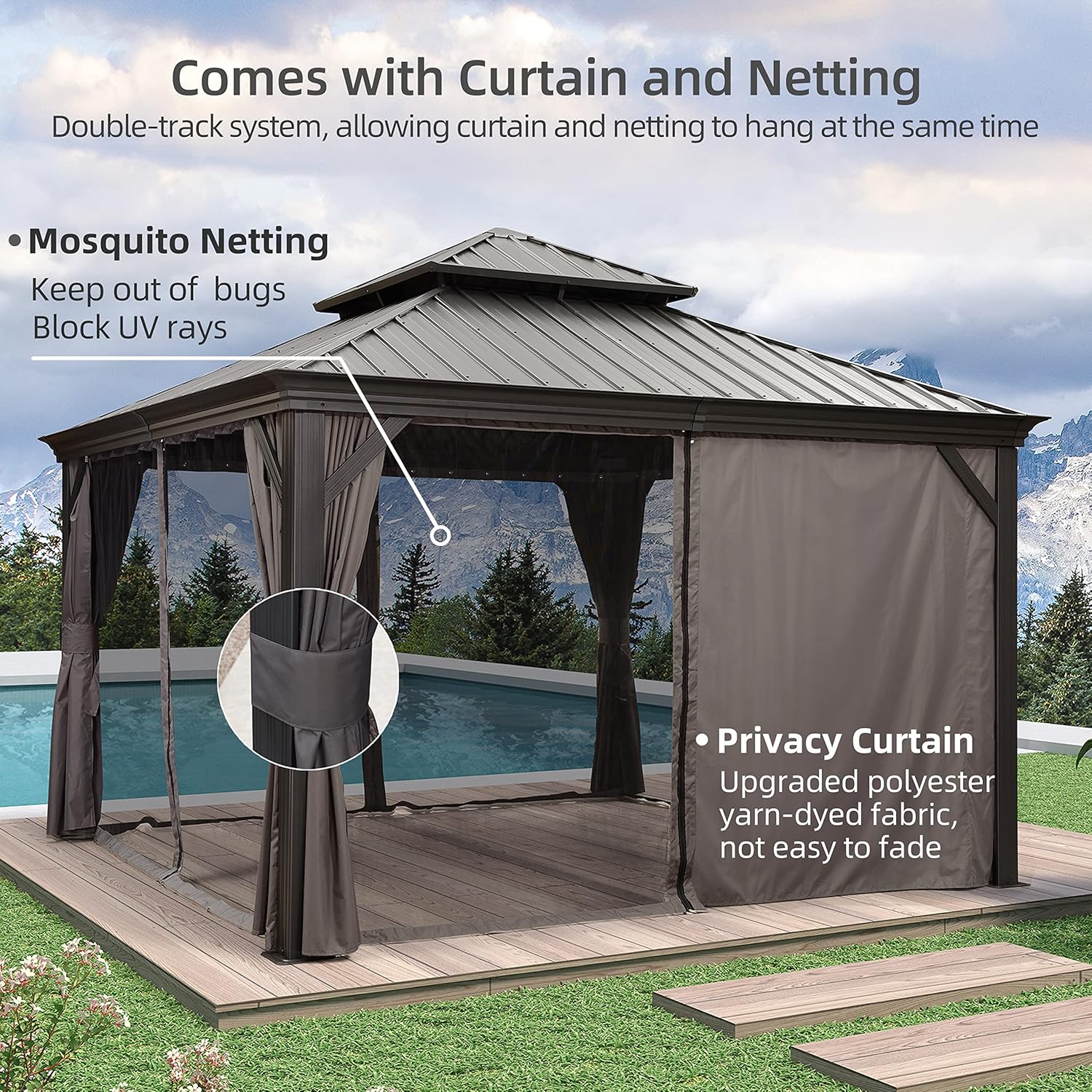 • Double Top Design: Double top vented roof for optimum airflow and comfort, helps withstand strong wind.