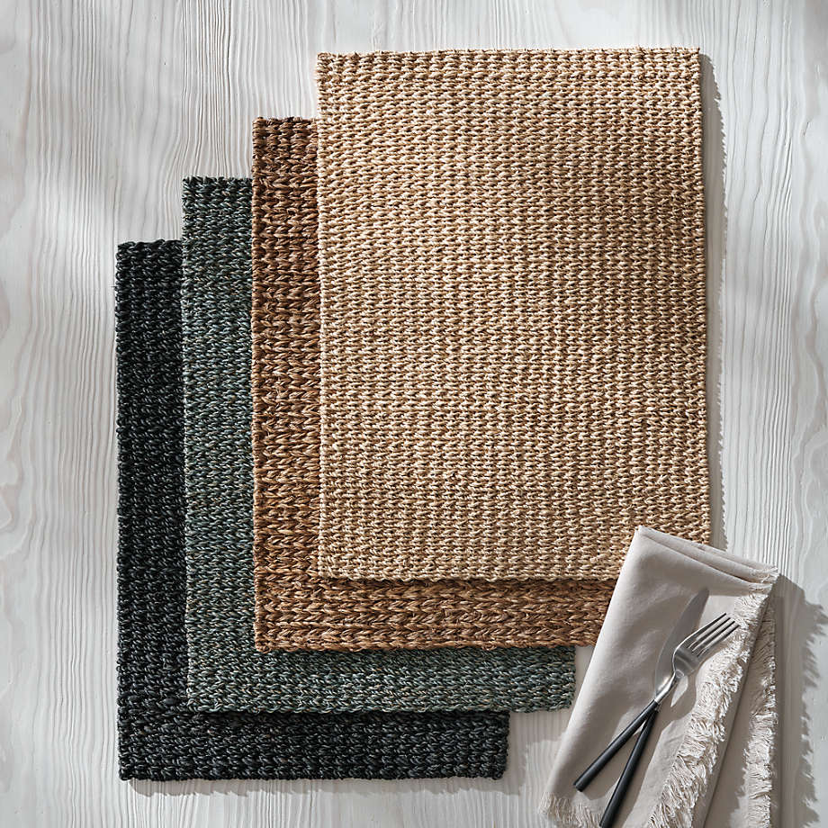 Intricate weave and deep color update the traditional fiber placemat for an earthy yet sophisticated look. The handwoven abaca mat sets an organic modern table when paired with our wood serving pieces. Or go tropical by adding our festive rattan barware and colorful melamine dinnerware.